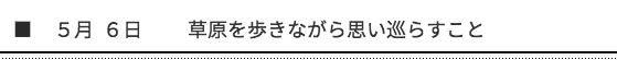 二人で歩きながら「那須のようね。」と和子先生。再び第一の広い草原に戻りました。その草原を見ながら思ったことは、イエス様が五千人の人達に食事を提供した場もこんな感じかなと黙想しました。