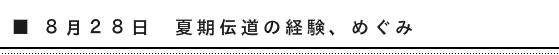 夏期伝道は実際に教会に住み込み牧師と生活を共にし伝道を学ぶことです。これは多くの神学校(牧師養成校)で行われているものです。ある者はこの期間で自分が牧師になれるかどうかの分かれ道になる厳しい訓練の時でもあります。