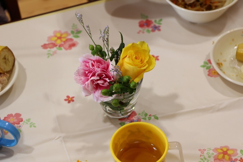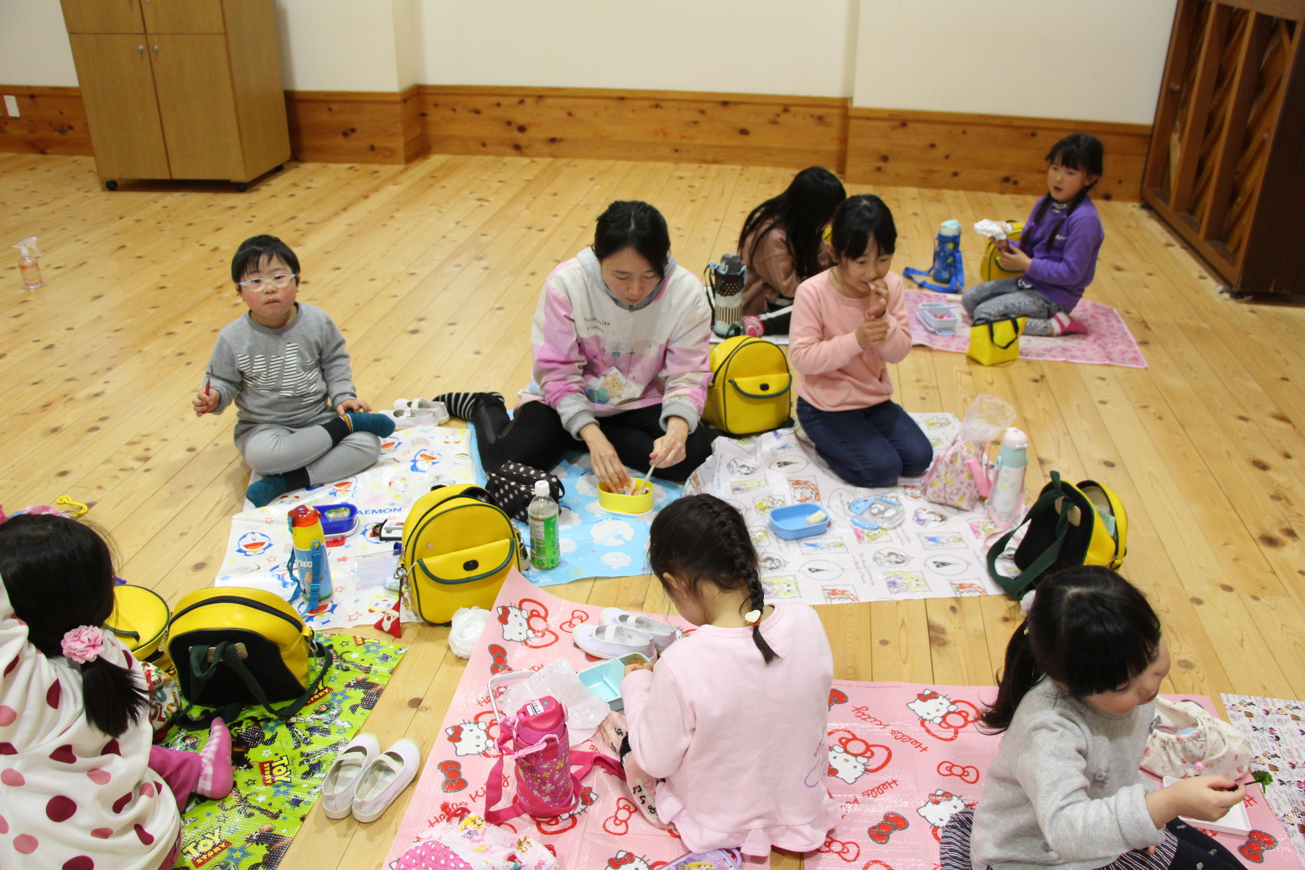 帰園してから遊戯室にレジャーシートを敷いて、お弁当を美味しく頂きました♪