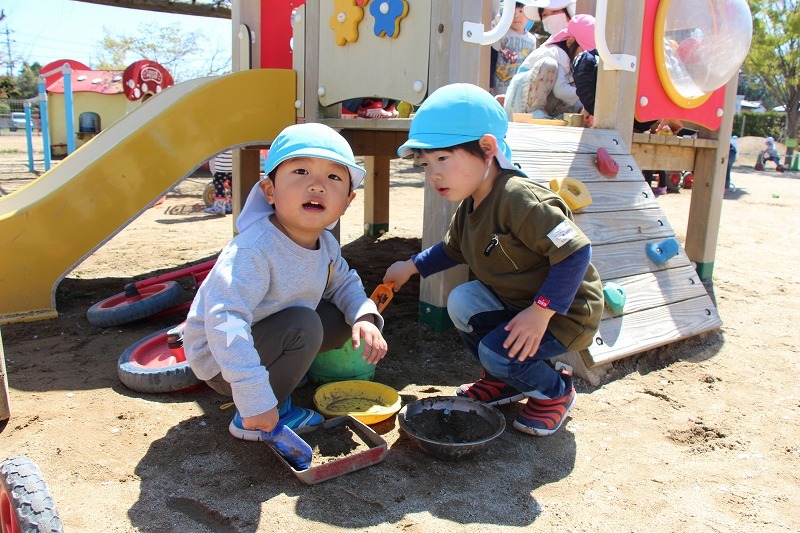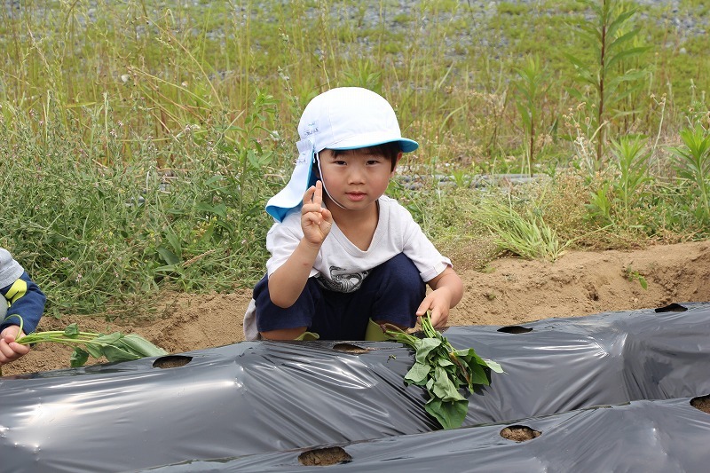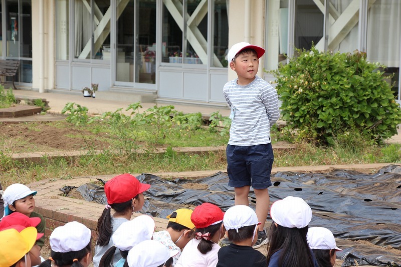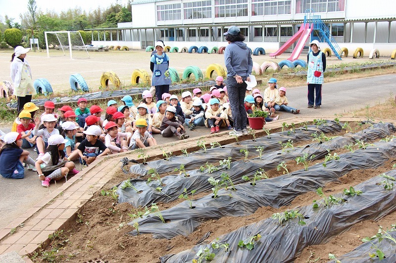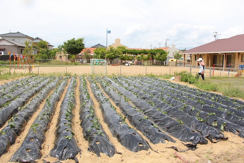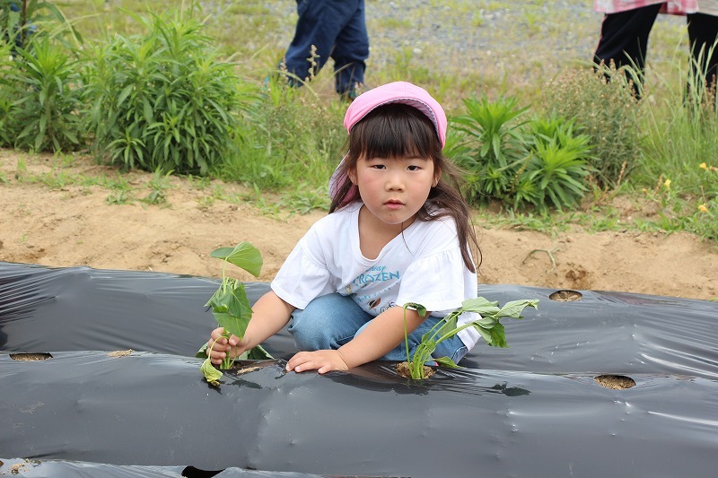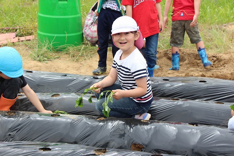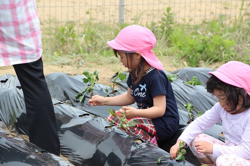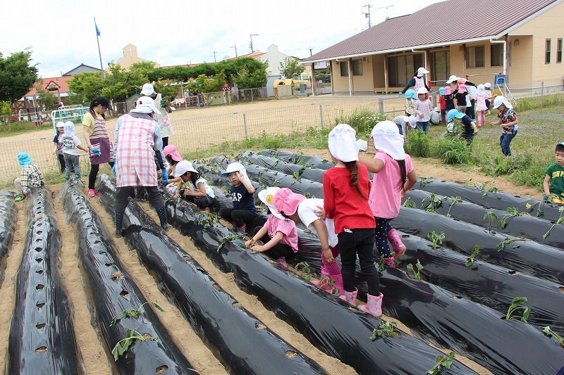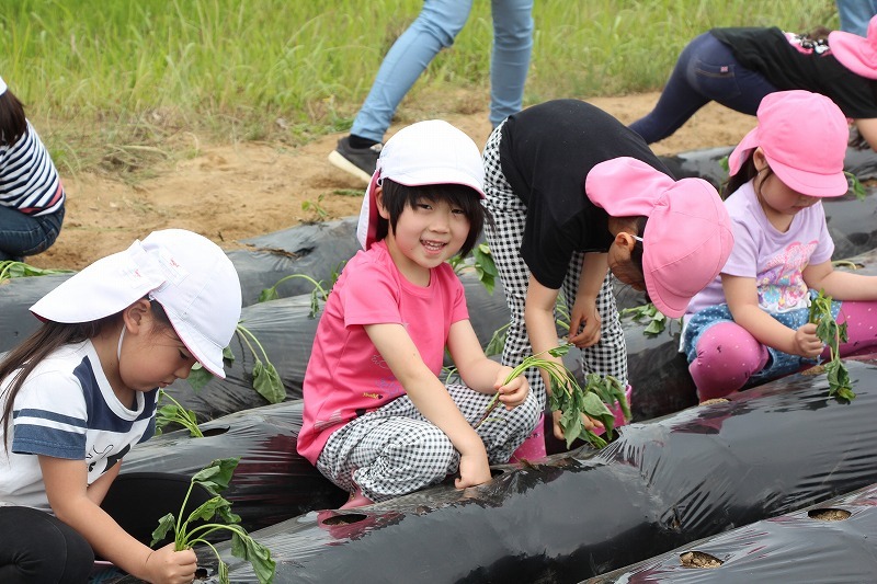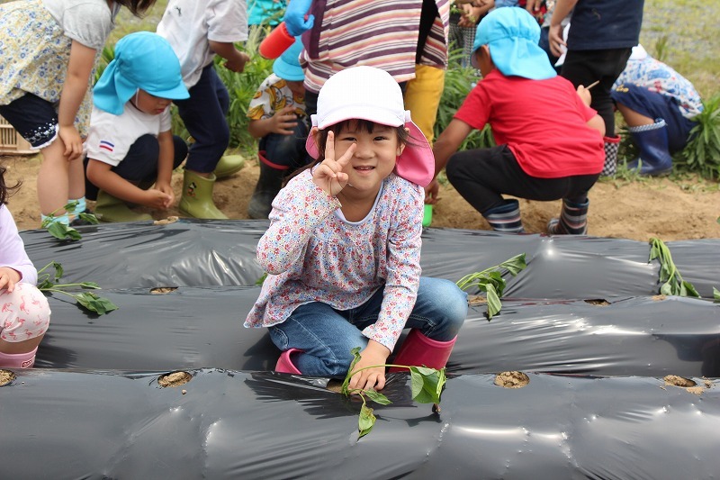 こひつじ園では、さくら組・ゆり組の園児で一緒にサツマイモ苗植えを行いました。今年から、畑の場所が移動したので、新しい場所での苗植えになりました。秋には、ばら組も一緒にサツマイモ掘りを行います♪