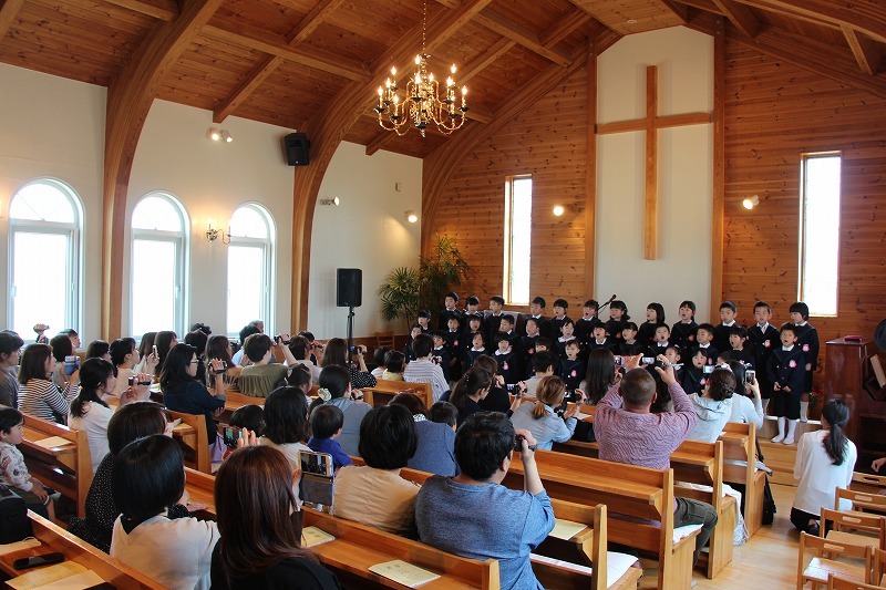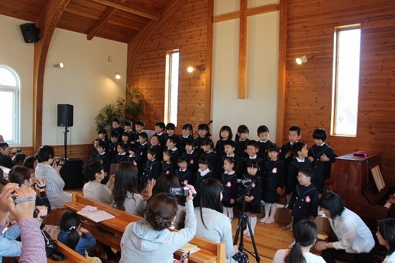 水郷めぐみ教会で、母の日音楽礼拝が行われ、年長児(さくら組)は子ども聖歌隊として出演しました。みんなで元気いっぱい歌を歌いました。「いつもありがとう、お母さん♪」の歌には、みんなが感動しました。