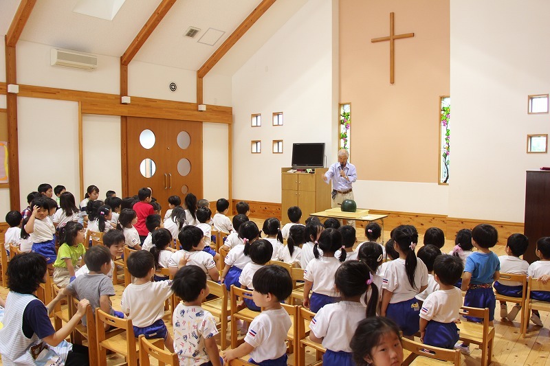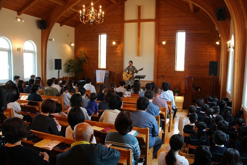 音楽ゲストに、ゴスペルシンガーのMigiwaさん、バイブルメッセージは平山園長(牧師)が行いました。