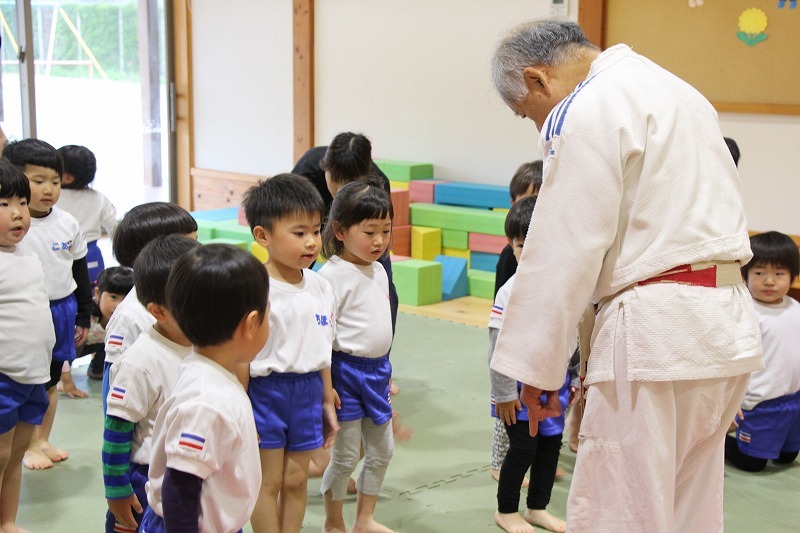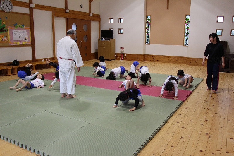 さくら・ゆり・ばら組は、毎月、柔道教室で講師の先生と一緒に体をいっぱい動かしています。柔道と言っても技を覚えるのではなく、体を動かす楽しさと喜びを先生を通じて教えて頂いています。
