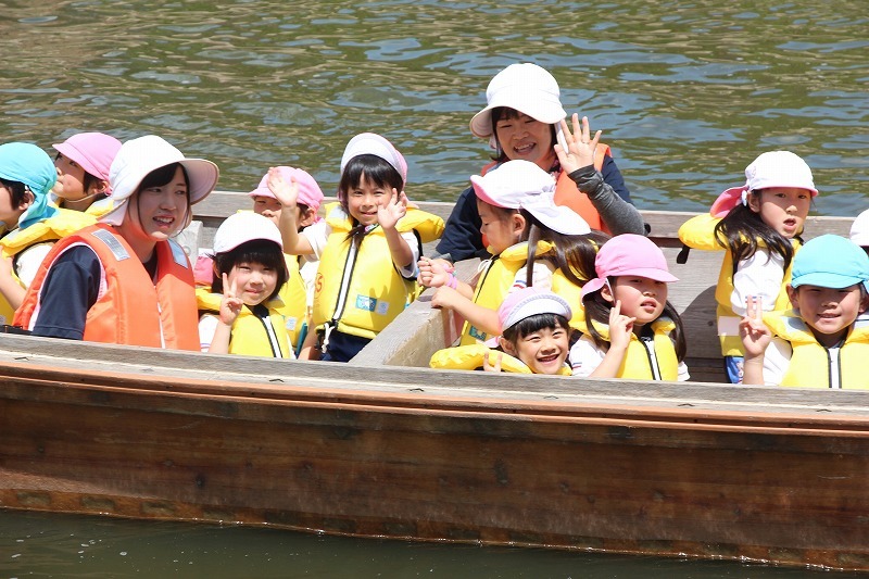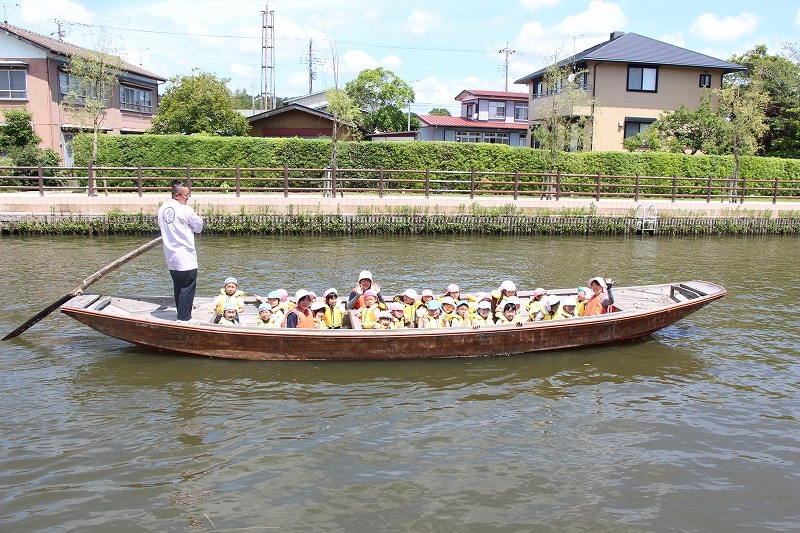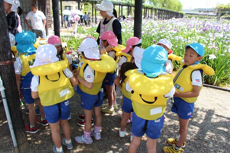 年長児さんは、あやめ公園に行って、ろ舟に乗りました。貴重な経験をさせて頂き心からありがとうございます!降りてからは、あやめ公園を散策して、綺麗なあやめを堪能しました。