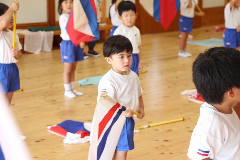 マーチング講習が行われました。ゆり組さんも頑張っています。ガードの練習に励んで、みんな徐々に上達しています。発表の場で自信をもって演じることを目標に。応援よろしくお願い致します!