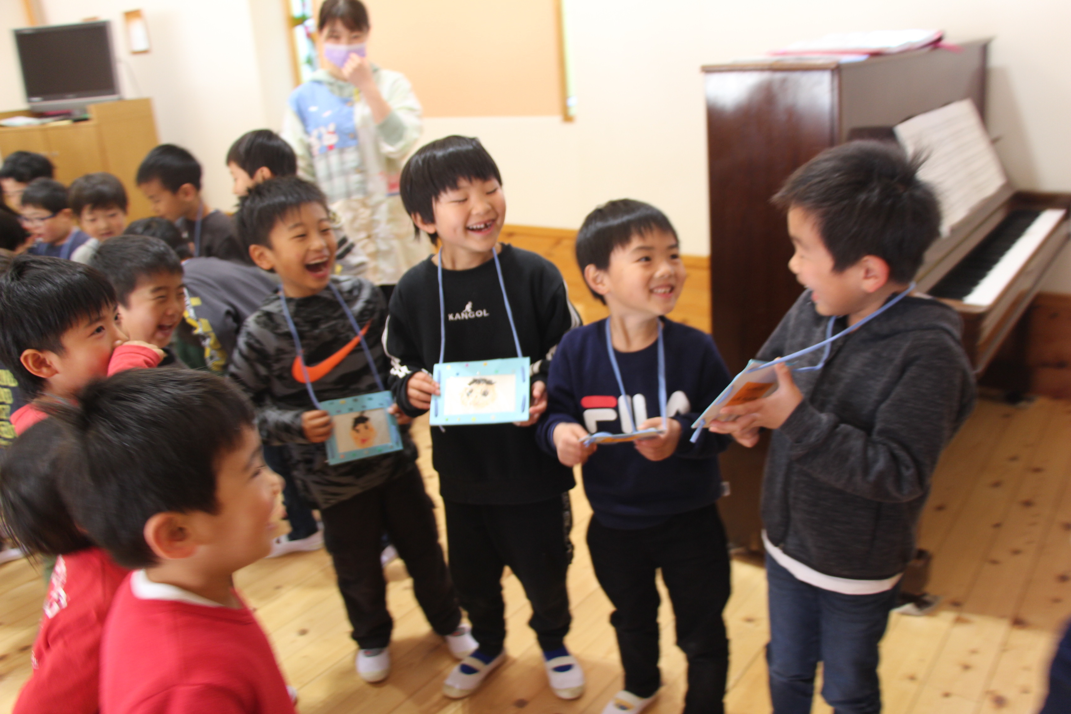 その前に、ゆり組さんからさくら組さんへ製作したプレゼントを渡し、さくら組さんからは歌の贈り物がありました♪