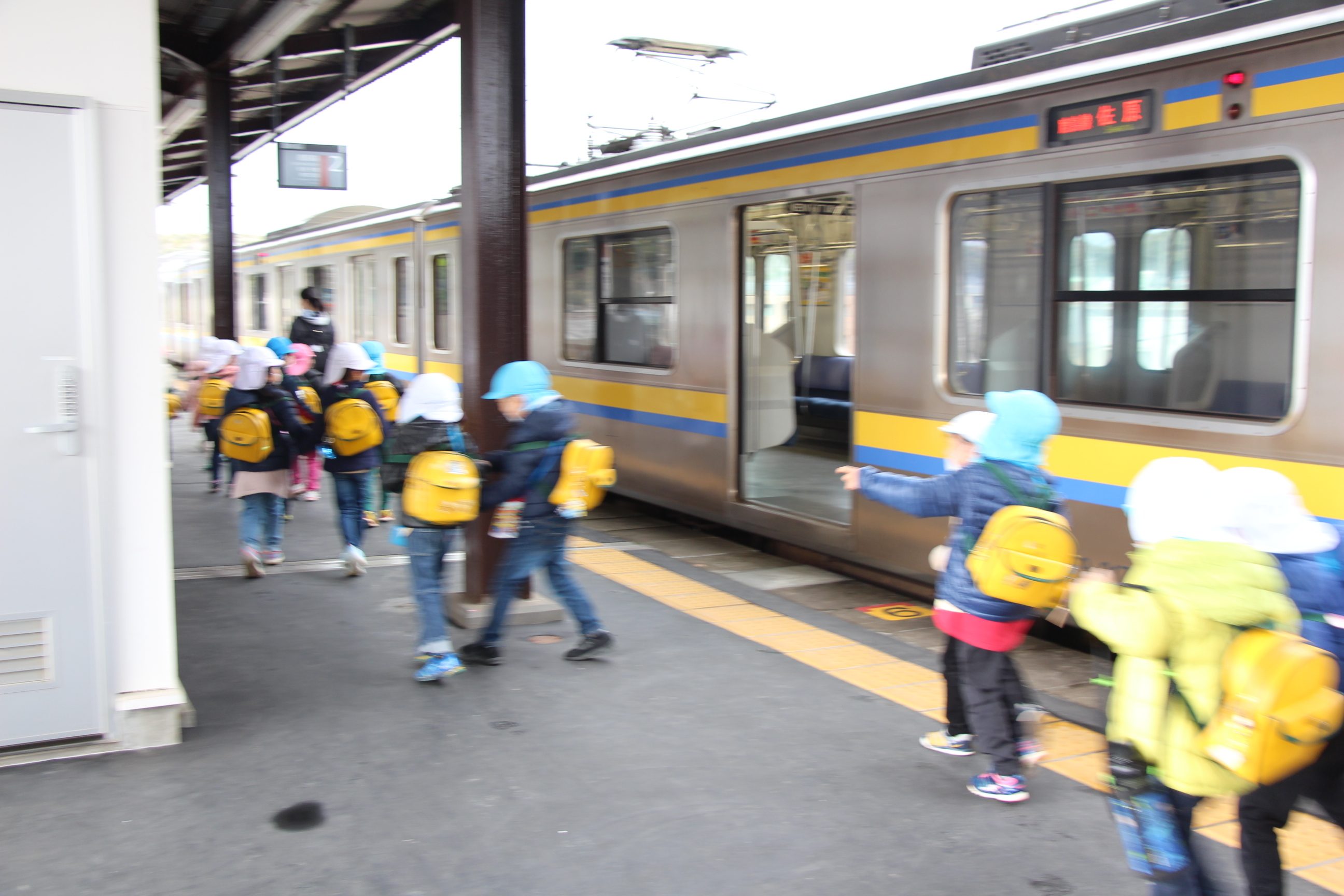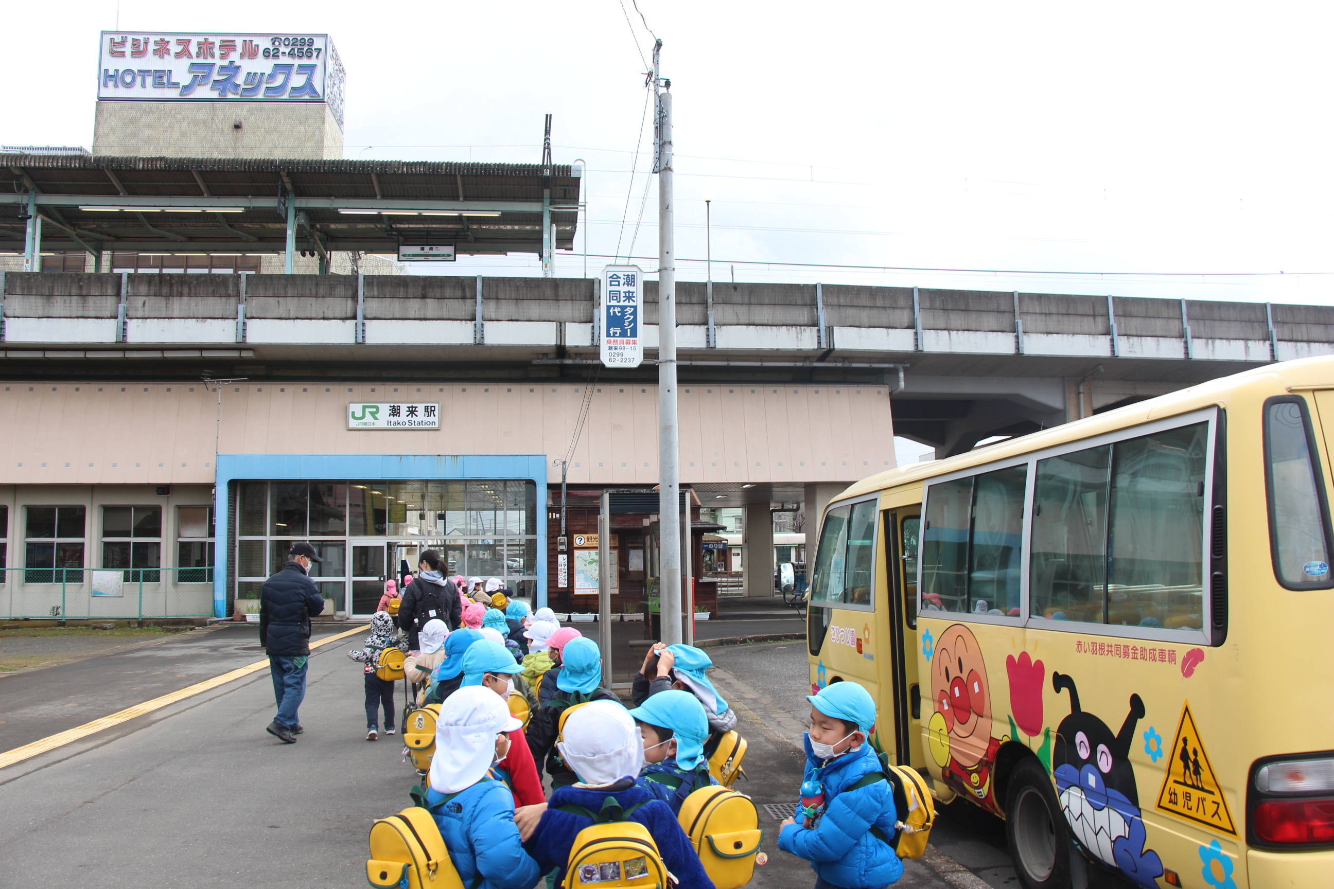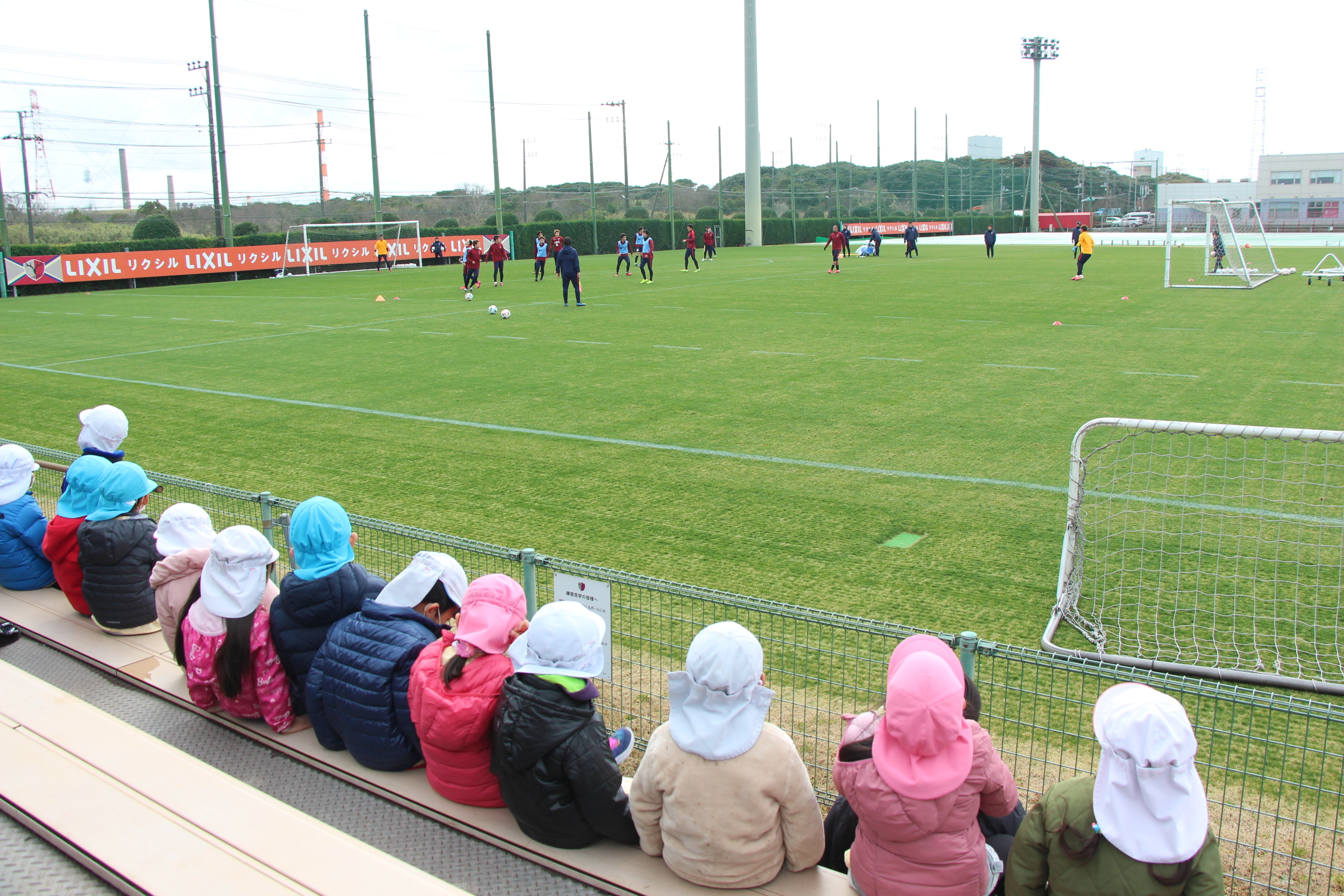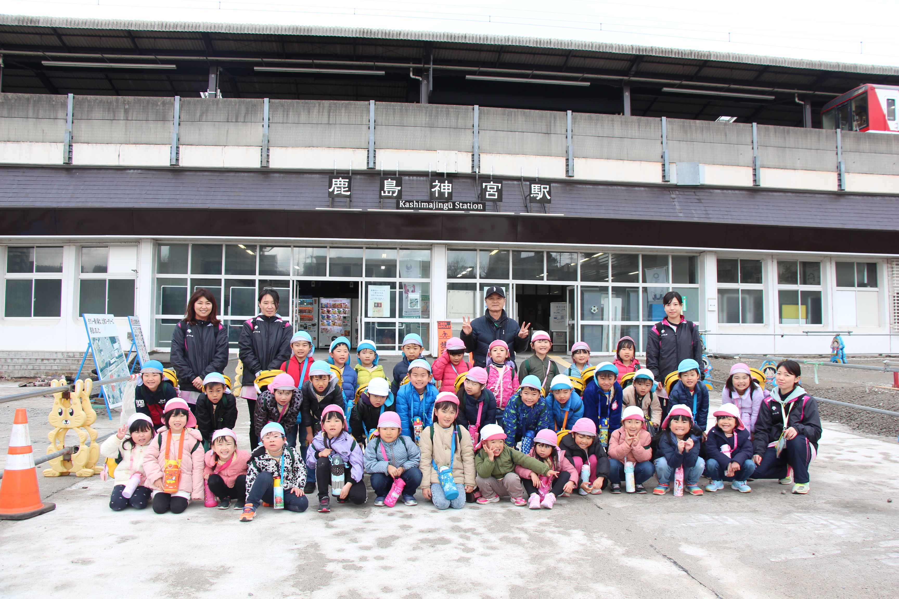 さくら組は、潮来駅から電車に乗ってかしま遠足に行ってきました。あいにくの雨で、予定していたはまなす公園(公園まで園バスで行きました)で遊ぶことは出来ませんでしたが、アントラーズのクラブハウスに立ち寄って選手の練習も間近に見ることが出来ました(ちょうど雨が止みました)。