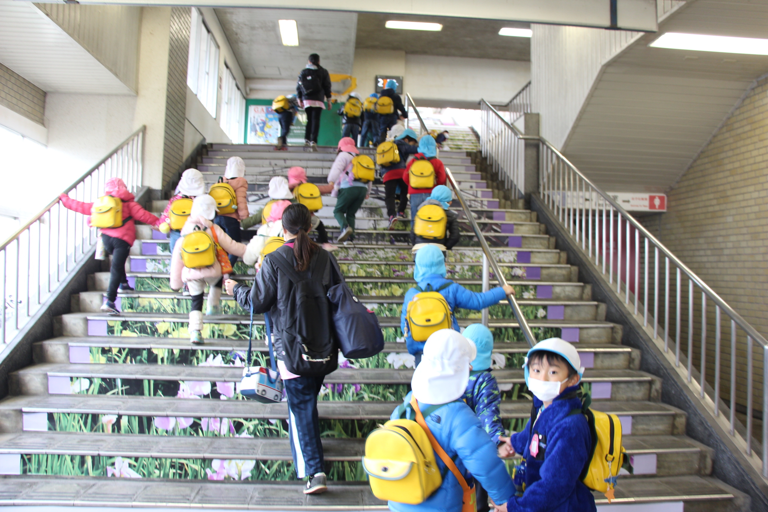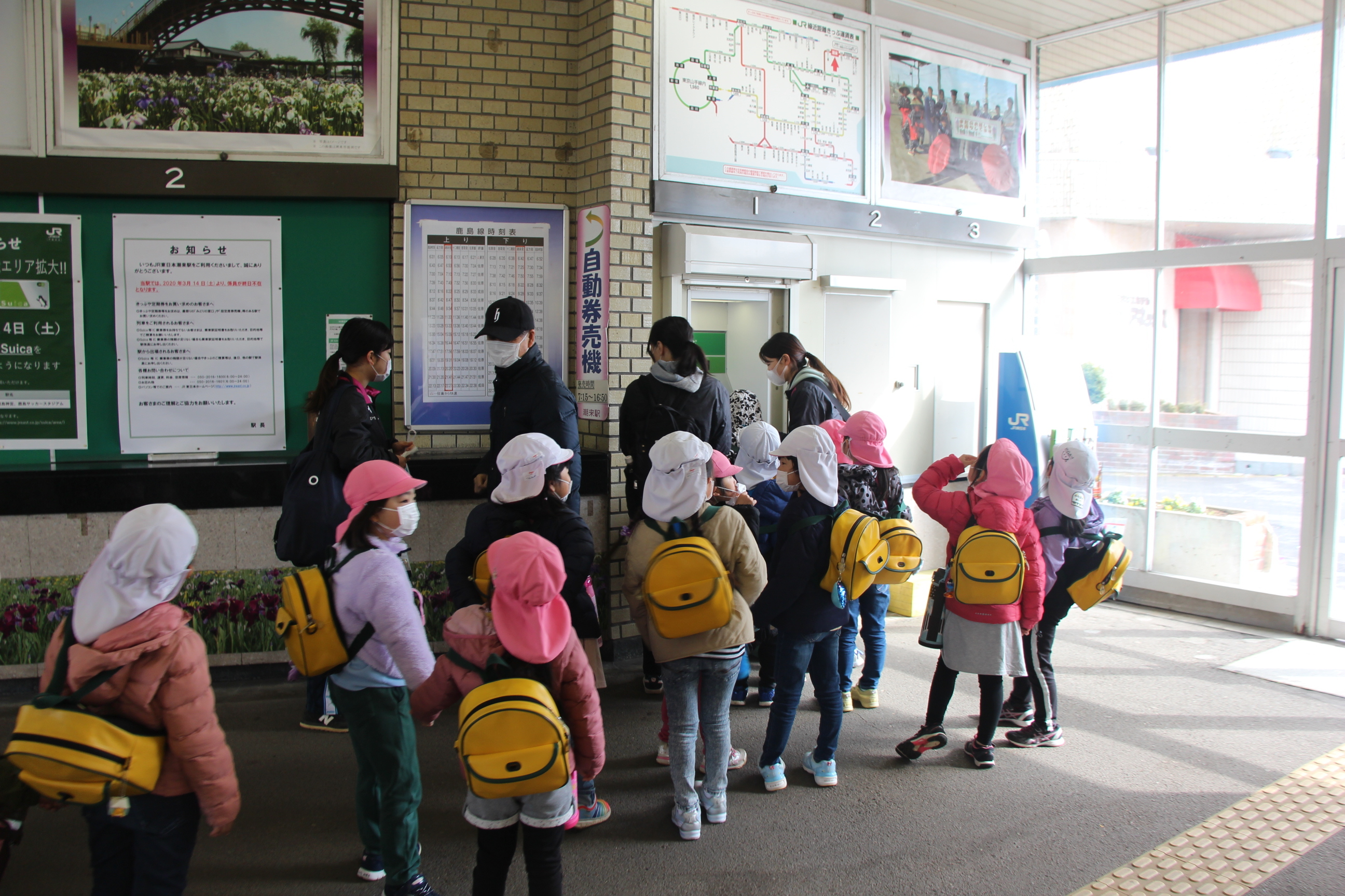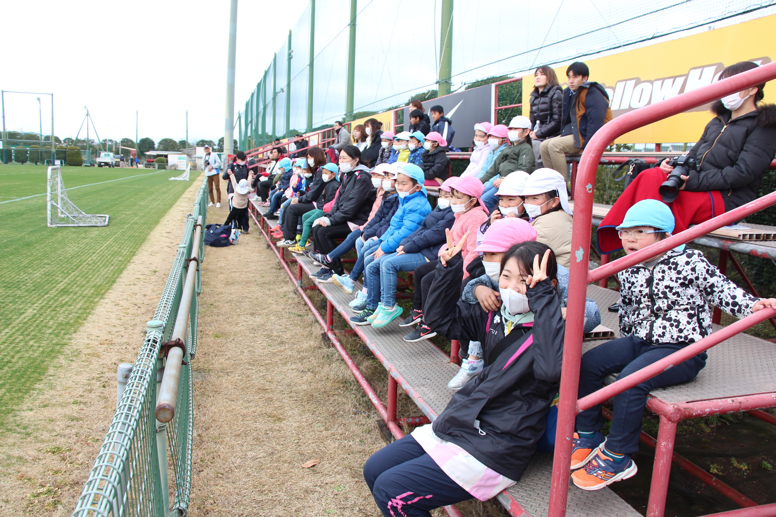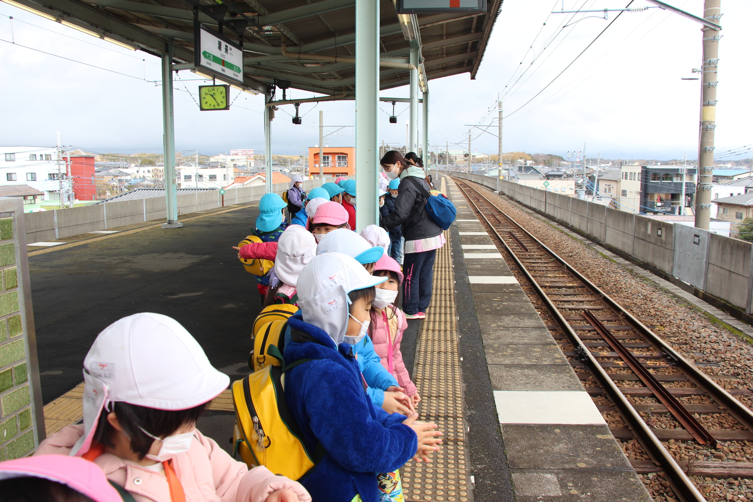 さくら組は、潮来駅から電車に乗ってかしま遠足に行ってきました。あいにくの雨で、予定していたはまなす公園(公園まで園バスで行きました)で遊ぶことは出来ませんでしたが、アントラーズのクラブハウスに立ち寄って選手の練習も間近に見ることが出来ました(ちょうど雨が止みました)。