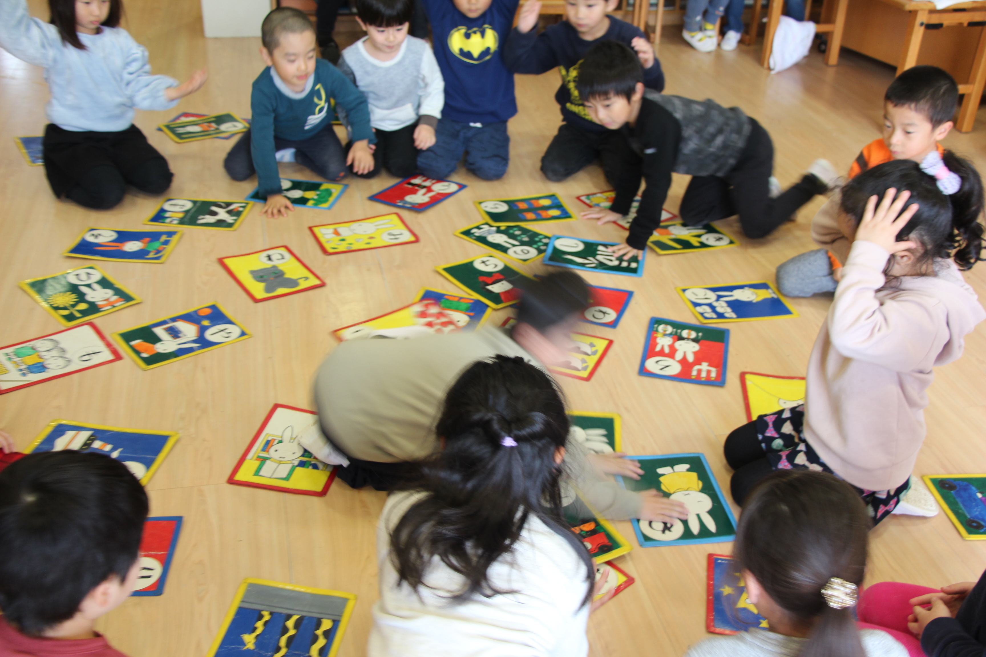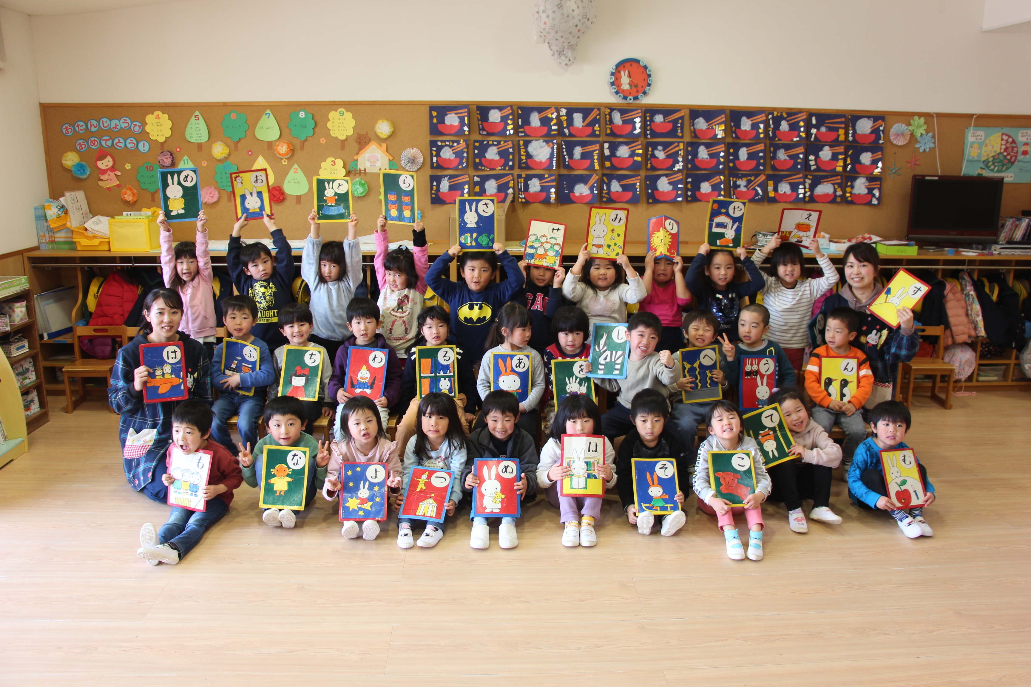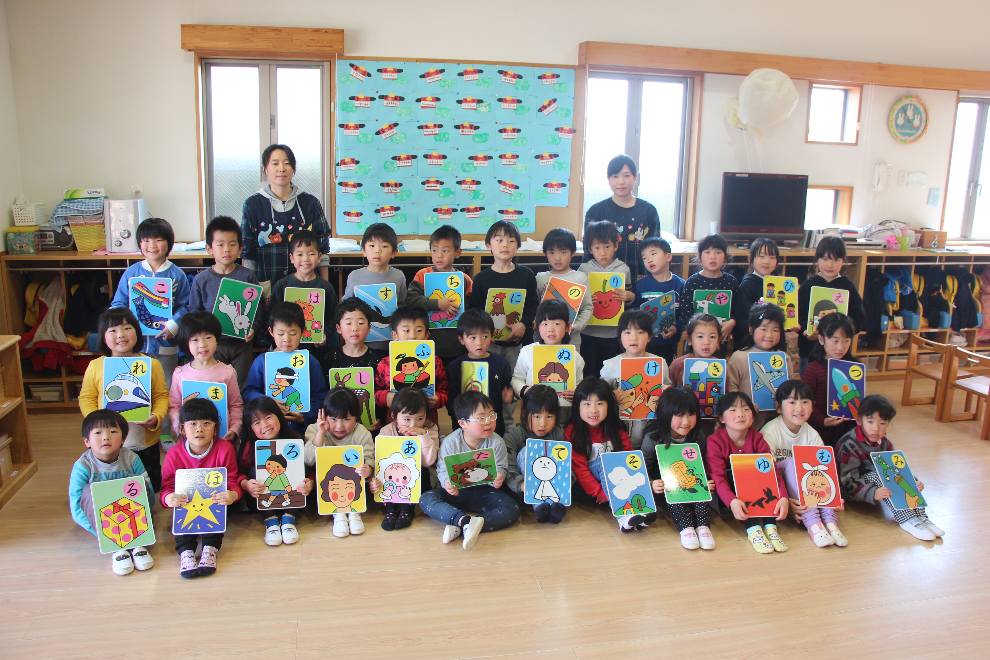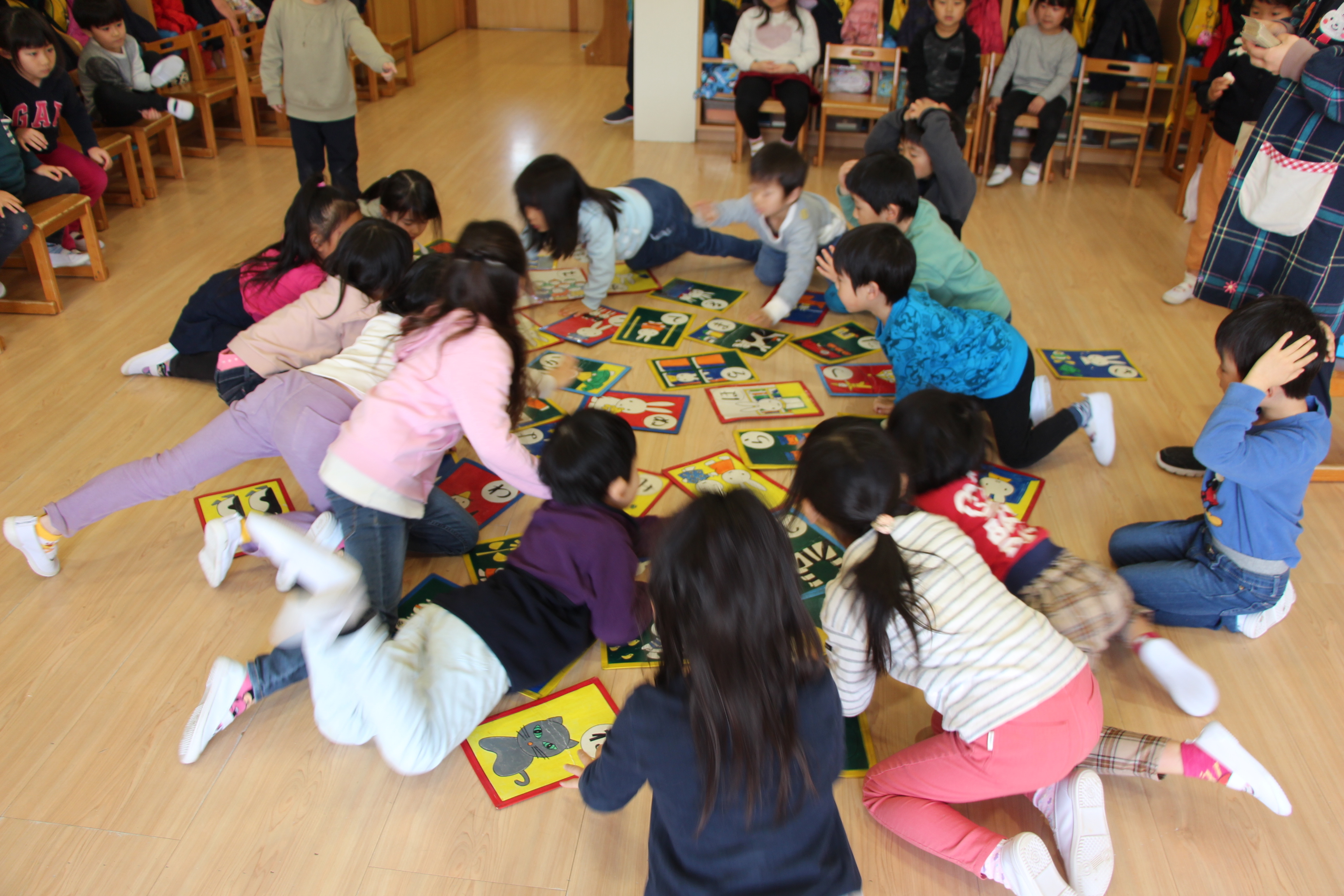 かるた取り大会を行いました。昨年よりも覚えたひらがなを目指して、みんな頑張りました♪