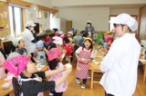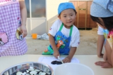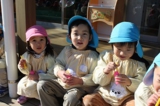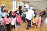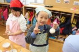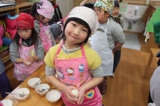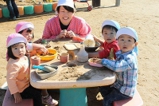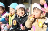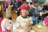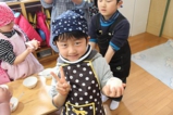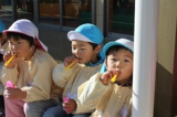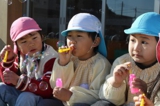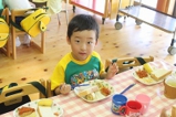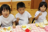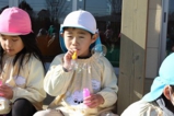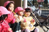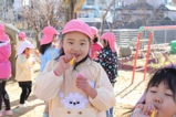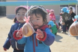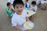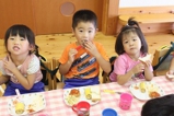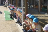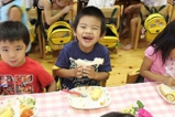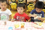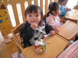 毎年恒例のアンパンマン大会を行いました。よーいドンのかけ声とともに、アンパンマンをお口でパクっ!どうしても取れないお子さんは、手でつかんでいましたが、みんな嬉しそうにアンパンマンのパンを手に取っていました。美味しく頂きました〜!