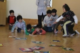 さくら組、ゆり組、ばら組さんは、カルタとり大会をしました。各クラスでグループに分かれて、先生の読み上げる言葉を聞きながら、頑張って取りました!