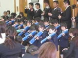 マーチングは、慰問にも行きます。おじいちゃん、おばあちゃんたちに喜んで頂く触れ合いの時です。演奏の後は、みんなでタオルをもって「おんせんおんせん〜♪」で体を動かしました★