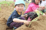 さくら組とゆり組は、こひつじ園の畑にいって「サツマイモ」の苗を植えて来ました。みんな上手にできましたよ!秋のイモ掘り大会をお楽しみに!イモ掘り大会は、ばら組も一緒にがんばります★