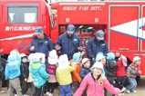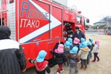 避難訓練では、消防車と消防士さんが来て下さいました。消化器訓練や、消防士さんからのお話、また、消防車に触れる時もあり、みんなとっても嬉しく楽しい時を過ごしました。ありがとうございます!