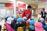 年長児さんは、鹿嶋遠足に行きました。潮来駅で自分で切符を購入し、電車に乗って鹿嶋駅まで。ただ、あいにくの雨が降っていたので,アントラーズのクラブハウスに行きました。練習は終わってしまっていましたが、スタッフの方にお願いして、アントラーズのキーパーの川俣選手(No.29)とおしゃべりして、一緒に記念撮影も撮って頂きました。