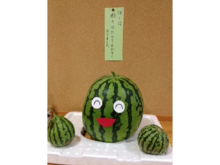スイカがなりました。何故か小さな子どもたちは毎日砂をかけて大きくなれといっています。みんなの目の前でスイカを割って食べられたらいいなーと思いながら砂を除いています。
