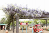 園庭は春の彩りをみせています。藤棚では、藤の花が見事に咲いています。紅葉も、新緑の清々しさを感じます。チューリップも可愛いですね。子どもたちは、この自然に触れながら、体いっぱい動かして、日ごとに自由遊びを経験しています。