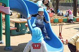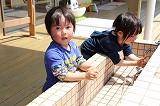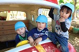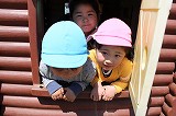 新入園児も、徐々に園の雰囲気とリズムに慣れて来ました。思い思いの遊びを楽しみながら、またクラスのお友達や別のクラスの園児たちとも触れ合いながら、楽しく過ごしています。畑では、園長先生が何かしていますね。鯉のぼりも、風に乗って泳いでいます♪