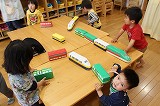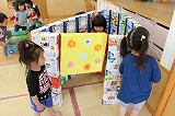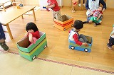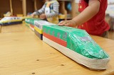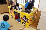 手作りオモチャが一つ一つ出来上がっています。みなさんにご協力頂いています牛乳パックが大型オモチャや新幹線に生まれ変わっています★こどもたちとっても楽しそうですね!かなりの完成度ですよ♪
