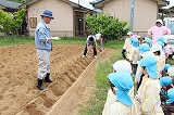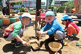 5月29日に、さくら組さんとゆり組さんは、サツマイモの苗植えを行いました。園長先生の説明をじっと聞きながら、みんなで協力してサツマイモ苗を植えることができました!秋のサツマイモ掘りは、ばら組さんも一緒に行います!お楽しみに♪