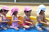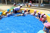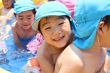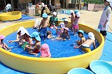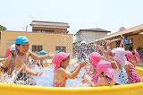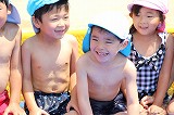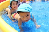 季節の変わり目、天候の変わり易い毎日ですが,良い天候の日には、園庭のプールで楽しんでいます♪ みんな水遊びが大好きですね!
