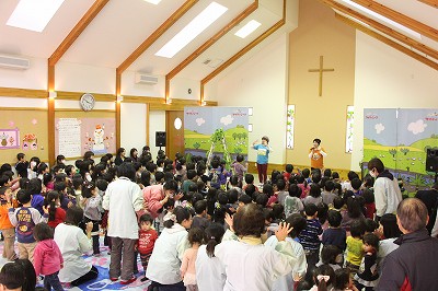 毎年恒例の、観劇を行いました。今年は、マイティシープです。全クラスが参加し、本格的な劇を通して、子どもたちもとても楽しんでいました。すくすくラミーの親子20組も参加して、遊戯室は満員でした!