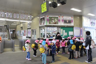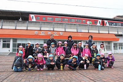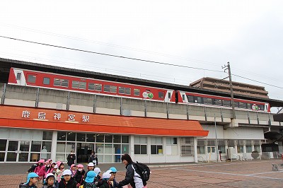 年長児さんは、鹿嶋遠足に行きました。潮来駅で自分で切符を購入し、鹿島神宮駅まで電車に乗りました。途中、こひつじ園の園舎も見えました!