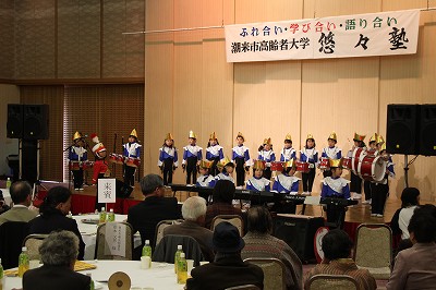 開花亭にて、悠々塾でのマーチング演奏を行いました。沢山のおじいちゃん、おばあちゃんたちが見守って下さる中、元気いっぱい演奏することが出来ました!本当に沢山の拍手をありがとうございました!