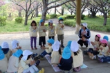 アメリカ(ニュージャージー)からお客さんが日本に滞在し、毎日来園してお手伝いしてくださいました。ゆり〜さくら組では、毎日のように英語の発音や歌を歌って、楽しく過ごすことが出来ました。