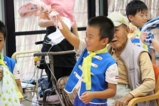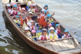 年長組さんは、ろ舟に乗りました。舟の大きな事故があったばかりでしたので、安全のためにみんなライフジャケットを着用してろ舟に乗りました。はじめての子がほとんどで、大きな舟にみんなで乗って楽しい思い出に残るときを過ごしました!商工会の青年部も皆様にも心から感謝いたします!