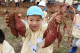 ゆり〜さくら組の園児と一緒に、さつまいも掘りをしました。苗植えをしてから数ヶ月、大きく成長しましたよ!みんなで力を合わせてたくさんのお芋を掘ることが出来ました(^^)