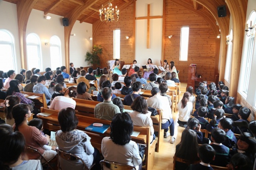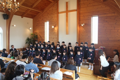 水郷めぐみ教会におきまして、母の日音楽礼拝がもたれました。さくら組は、こども聖歌隊としてゲスト出演です。お父さん、お母さんへの感謝の歌も歌いました♪「いつも、ありがとう、おかあさん〜♪」という歌声に、とっても感動しました。