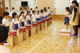 年長児さんは、いつもは各パートごとに練習していますが、今日は遊戯室で合奏をしました。みんなそれぞれの楽器に胸を張って取り組んでいます。本番はまだまだ先ですが、少しずつ少しずつ前に進んでいます。