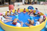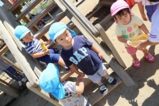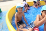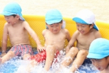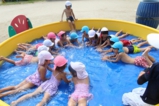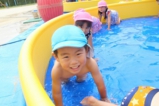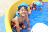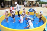 梅雨明けして、園でもプール遊びをしました!みんなプール大好きです(^^) 0歳児は室内で沐浴、1歳児〜それぞれの大きさのプールで楽しいひと時を過ごしました♪