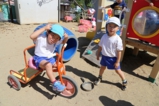気温差のある毎日ですが、とってもよいお天気の今日、広い園庭でのびのびと元気いっぱい遊びました。