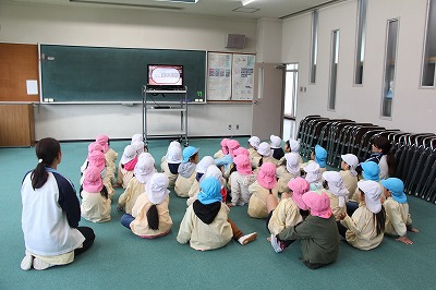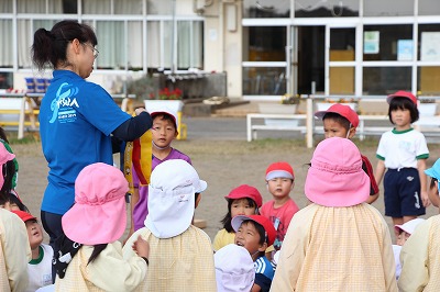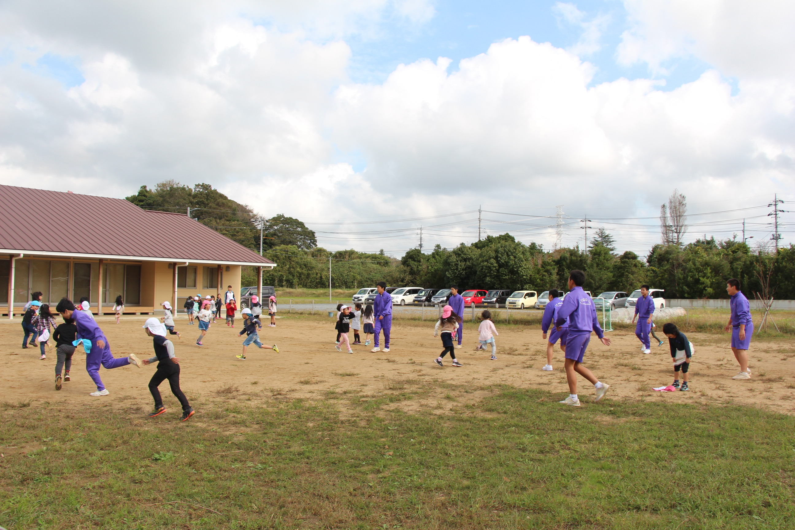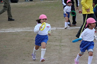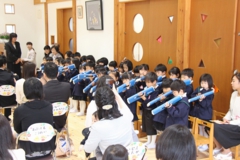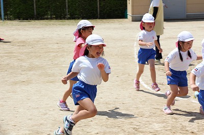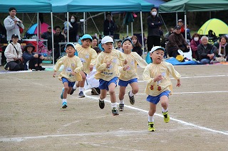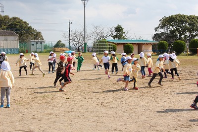 また、その後は、1年生のお友達とグラウンドで体をいっぱい動かしてゲームを行うことが出来ました。卒園生も元気いっぱい大きく成長し、感謝な一時でした。