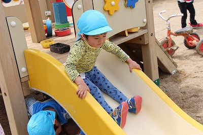 園庭でのびのびと自由遊びを楽しんでいます。天気の良い月曜〜金曜の10:00〜11:00まで園庭開放を行ってますので、お子さんと一緒に遊びにいらしてくださいね★