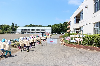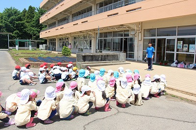 今年も、津知小学校にお伺いして、1年生と一緒にサツマイモ苗植えをしました。1ヶ月前に卒園した子どもたちが立派な姿で、さくら組のみんなをリードしてくれました。