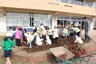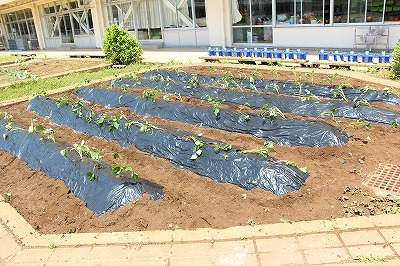 津知小、サツマイモ苗植えに行きました♪(さくら)