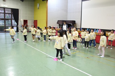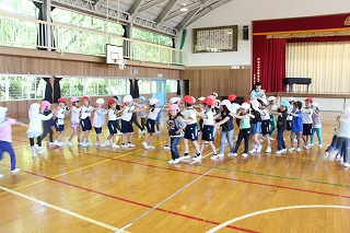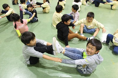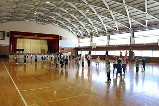 サツマイモ苗植えのあとは、体育館で一緒に体を動かしてゲーム遊びで交流です♪