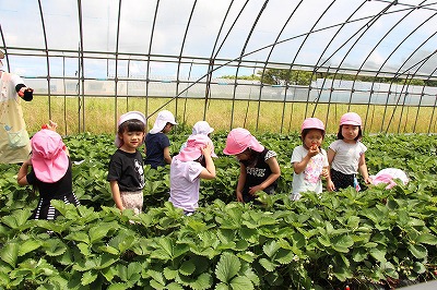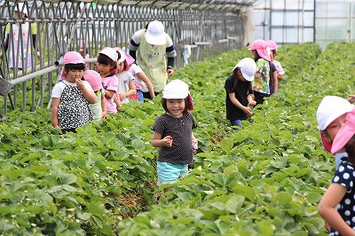 今年も、いちご農家さんのご厚意により、バスにのってイチゴ狩りに行ってきました♪ひろーいビニールハウスに入って、イチゴをたーくさん頂きました。とっても甘くて美味しかったです!ありがとうございます!