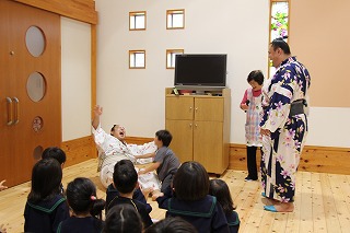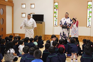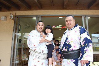 こひつじ園に、現在十両で活躍されている兄弟力士の英乃海力士、翔猿力士が遊びに来て下さいました。子どもたちもとっても大喜びで、抱っこして頂いたり、ハイタッチ、また楽しい一時をご一緒することが出来ました♪これからも益々のご活躍を期待しています!