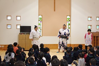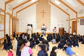 5月13日(日)に、園長が牧師をする水郷めぐみ教会で「母の日音楽礼拝」が行われ、年長児が子ども聖歌隊で特別出演しました。素敵な歌声は、天使の歌声でした。「いつも、ありがとう〜おかあさん〜」という歌に、とても感動しました。