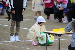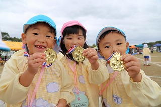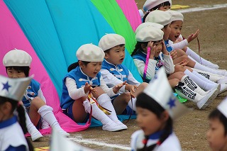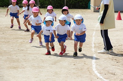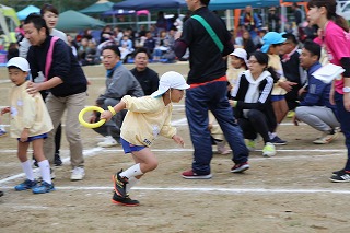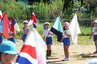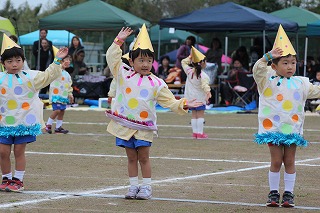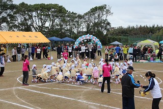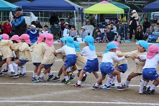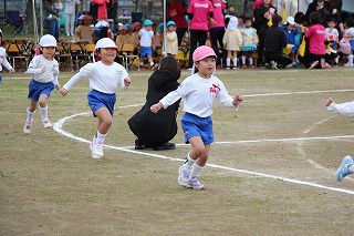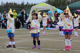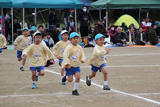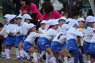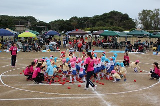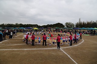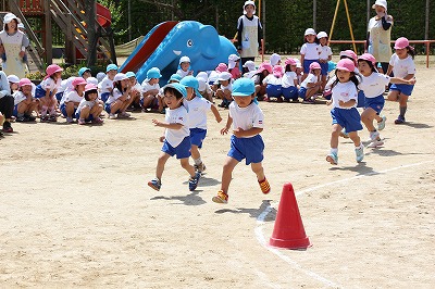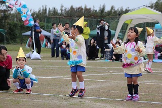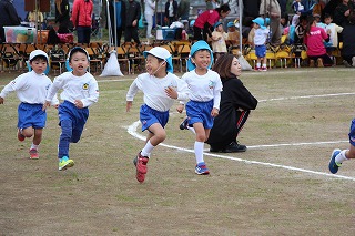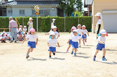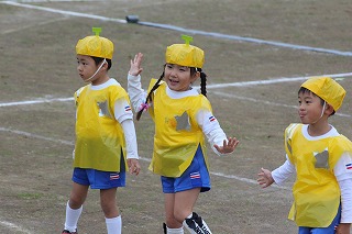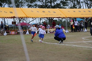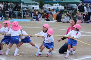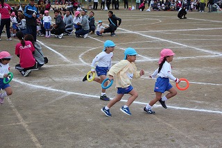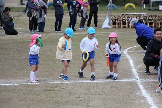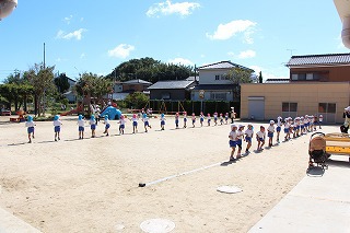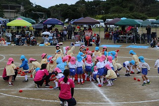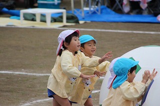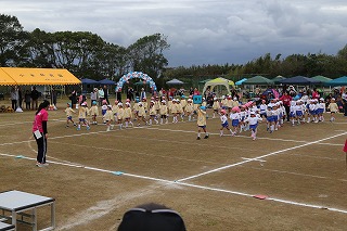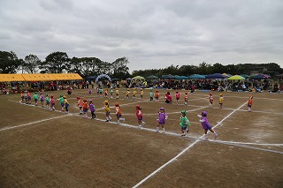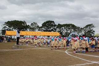 41回目を迎えた運動会、曇り空でしたがプログラムの一つ一つも守られて、無事に全うすることが出来ました。広々とした津知小学校グラウンドをお借りし、保護者や祖父母の皆様、園児のご兄弟や沢山の卒園児、未就園児の親子や地域の方々も沢山足を運んでくださり、心から感謝致しております。