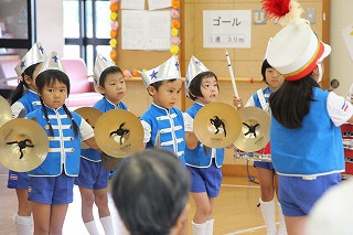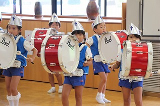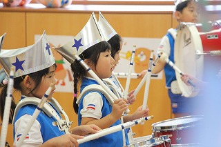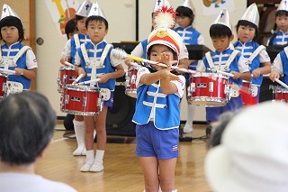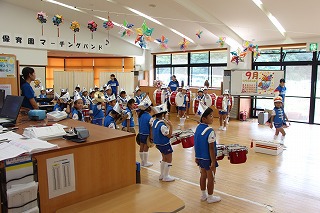 もう1曲は、現在取り組んでいるところです。運動会では、フォーメーションで隊列を変化させながら移動し、演奏を行います。また、年中児もガード隊&バルーンで参加し、とても見応えがありますよ。ぜひ運動会(10/13 津知小グラウンド)にもいらしてくださいね♪