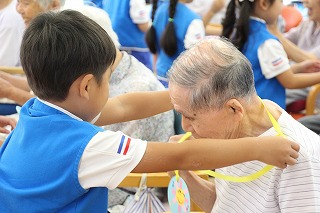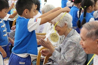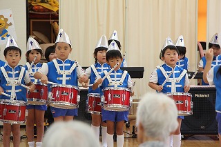今年も、潮来市内の施設におきまして、マーチング慰問(年長児)が始まりました。マーチングの演奏をさせて頂き、その後、おじいちゃんおばあちゃんたちと触れあいの時を持たせて頂いております。最後には手作りのメダルもプレゼント、喜んで頂けることは私たちにとっても大きな喜びです!