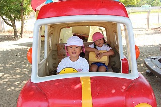 毎月最後は、避難訓練を行っています。今日(9/28)は火災想定で、全クラスが園庭に避難をしました。とっても上手に避難することが出来ました。積み重ねることを通して、子どもたちの意識、動きも成長していきます。避難訓練の際、クラスでのお話に「おかしも」という言葉が出ます。「おさない、かけない、しゃべらない、もどらない」です。ご家庭でお子さんたちとお話してみてくださいね。