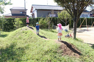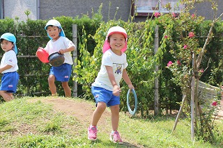 広い園庭でのびのびと楽しく自由遊びをしています♪自分で遊びたい遊びを選び楽しみながら、また友達と交流しながら、いろんなことを学んでいます。虫取りも人気です♪