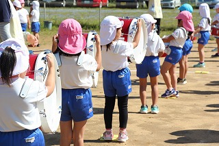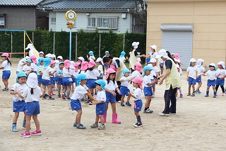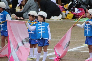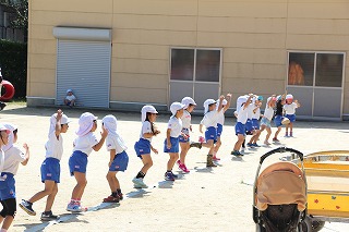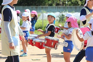いよいよ10月は運動会です。年長児、年中児は学童グランドでマーチング、フォーメーションの練習もしました。楽器を持って演奏、ガードをもって演技、少しずつ少しずつ練習を重ねて、本番(10/13)を迎えます。園庭では、運動会のお遊戯の練習なども行っていました。