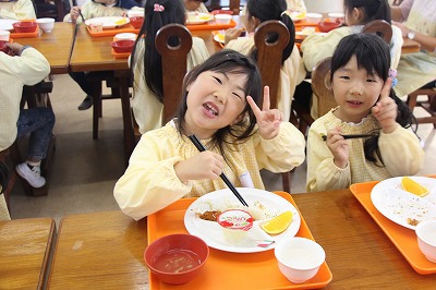 給食で新米がスタート♪